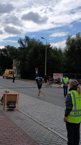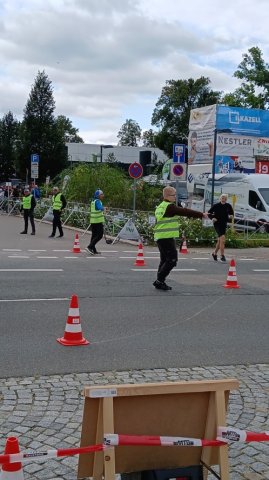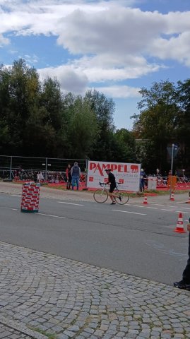 Nachdem Radfahren aus der Wechselzone zur Laufstrecke.